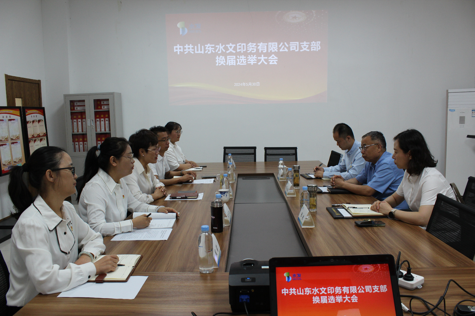5月30日上午,水文印務(wù)黨支部召開黨員大會,進(jìn)行換屆選舉。水發(fā)水控集團(tuán)(籌)黨委副書記、副董事長蘆永強(qiáng)、黨群宣傳部部長張瑾到會督導(dǎo),公司支部書記、董事長張莉主持會議,全體黨員參會。