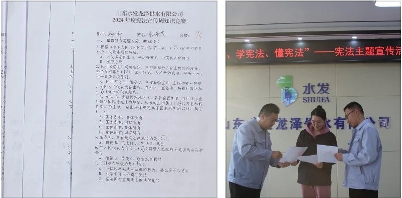 山東水發(fā)龍澤供水有限公司開展“識憲法、學憲法、懂憲法”宣傳活動,活動分為普法宣傳和憲法知識競賽兩部分。